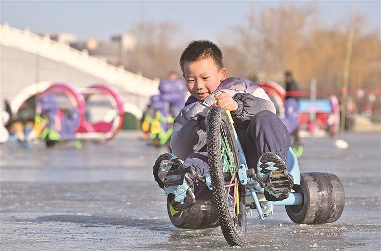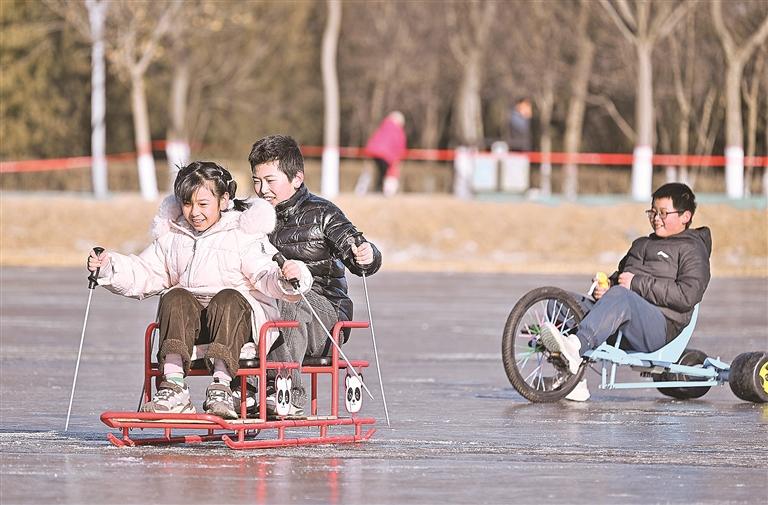 此外,城市公园的冰上乐土成为市民失业的好去向。海宝公园、宝湖公园、丽景湖公园打造冰上体验区,推出冰上竞速赛车、传统冰车、滑雪圈、冰上自行车等形态。孩童嬉戏玩闹,成年东说念主重温童趣,冰面之上欢声笑语束缚。
