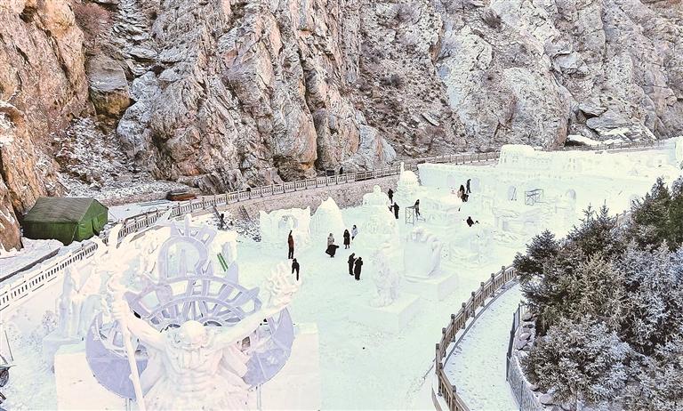 冰雪与文化的援手,为银川冬季文旅更添韵味。在贺兰山岩画景区,以“石语秘境千名胜,雪舞冰峰万象新”为主题的第四届冰峰节正火热举行。这场集冰雪奇不雅、文化体验于一体的冬日嘉会,将岩画文化与灵动冰雪景不雅聚拢,通过冰雕展示、习惯活动等体式,让旅客在赏玩当然之好意思之余,千里浸式感受深厚的文化底蕴。