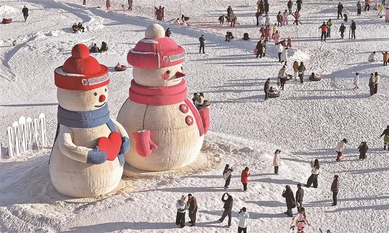 阅海滑雪场,卡通雪东说念主劝诱市民和旅客打卡。