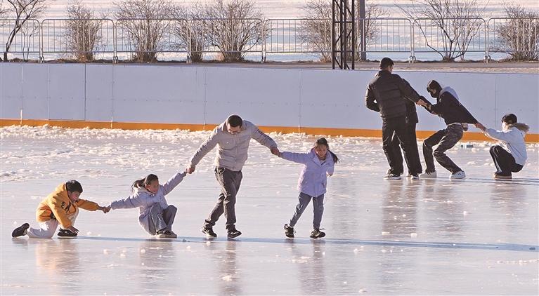 览猴子园冰场,大东说念主携孩子享受冰雪之趣。