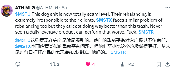 这种情况也发生在MSTX上,酬酢媒体上对这两只ETF酌量纷纭,网友吐槽:数学失灵了。