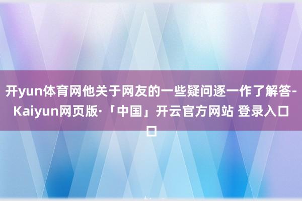 开yun体育网他关于网友的一些疑问逐一作了解答-Kaiyun网页版·「中国」开云官方网站 登录入口