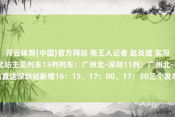 开云体育(中国)官方网站 南王人记者 赵炎雄 实习生 程好意思人 摄 广州北站主见列车 13列列车:广州北-深圳11列;广州北-福田2列 增开6列一站直达 深圳站新增16:15、17:00、17:30三个发车时辰-Kaiyun网页版·「中国」开云官方网站 登录入口
