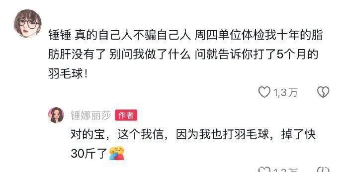 最近她还回话网友,我方是靠打羽毛球减了30斤,在饮食上亦然追求极致清淡,每天水煮卵白质、碳水、蔬菜,8小时以内换着吃。但不得不说,减重后的锤锤确乎有点太好意思了!
